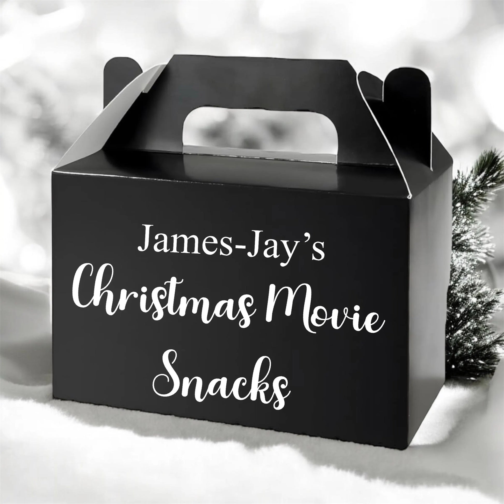 Christmas Movie Night Black Snack Box | Personalised Christmas Table Gift Box | Xmas Eve Box | Favour Place Name Stocking Filler Small