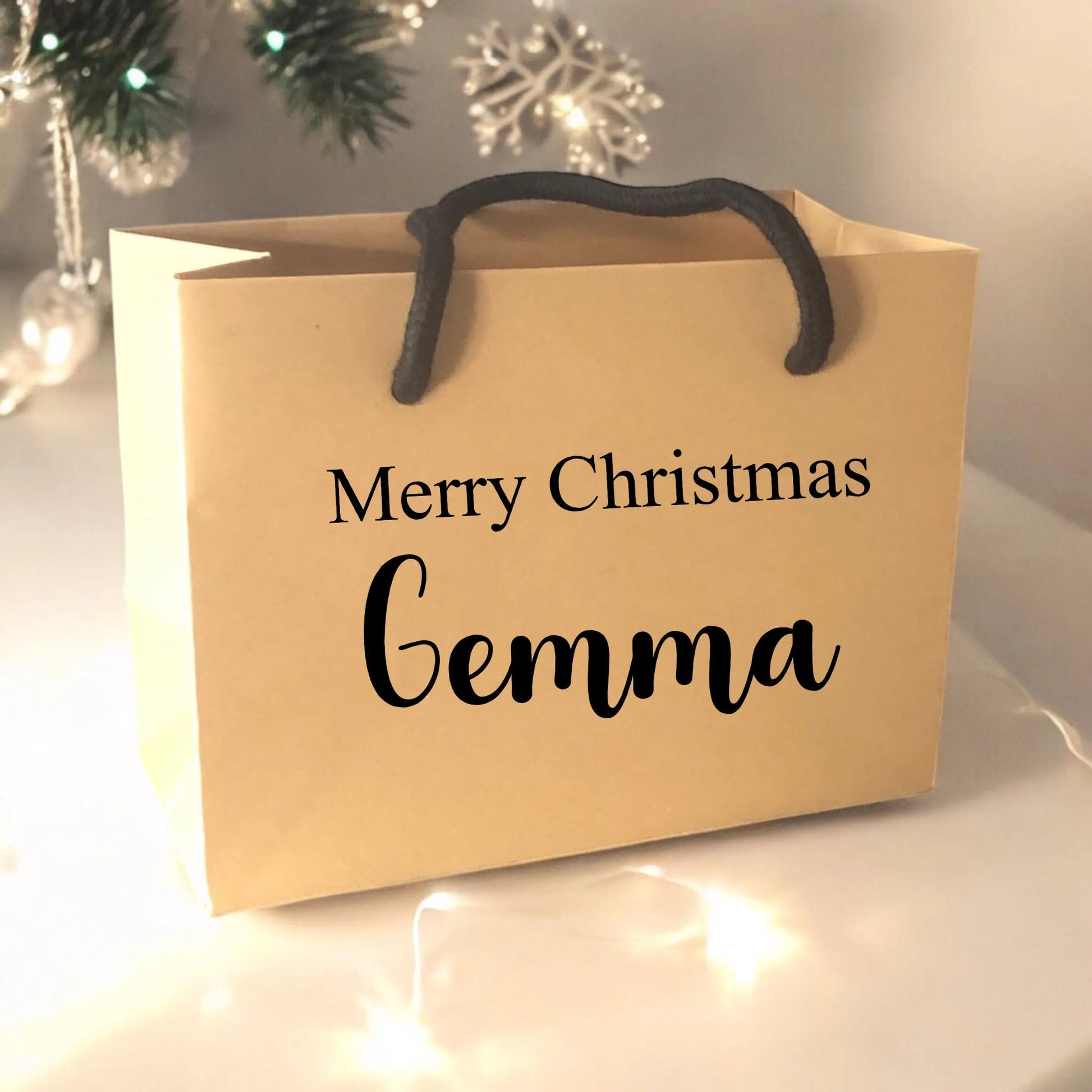 Kraft Brown Merry Christmas Gift Bag With Rope Handle Personalised With Name Small Medium Large Bags Gifts Present Table Gift Surprise 1