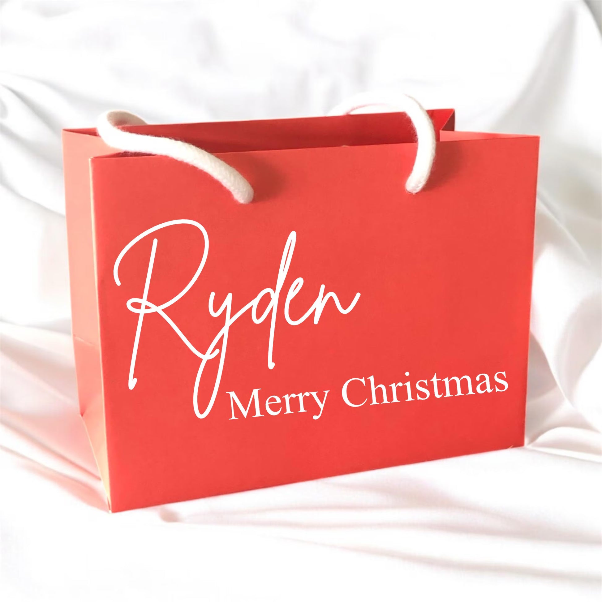 Red Merry Christmas Gift Bag With Rope Handle Personalised With Name Small Medium Large Bags Gifts Present Table Gift Surprise