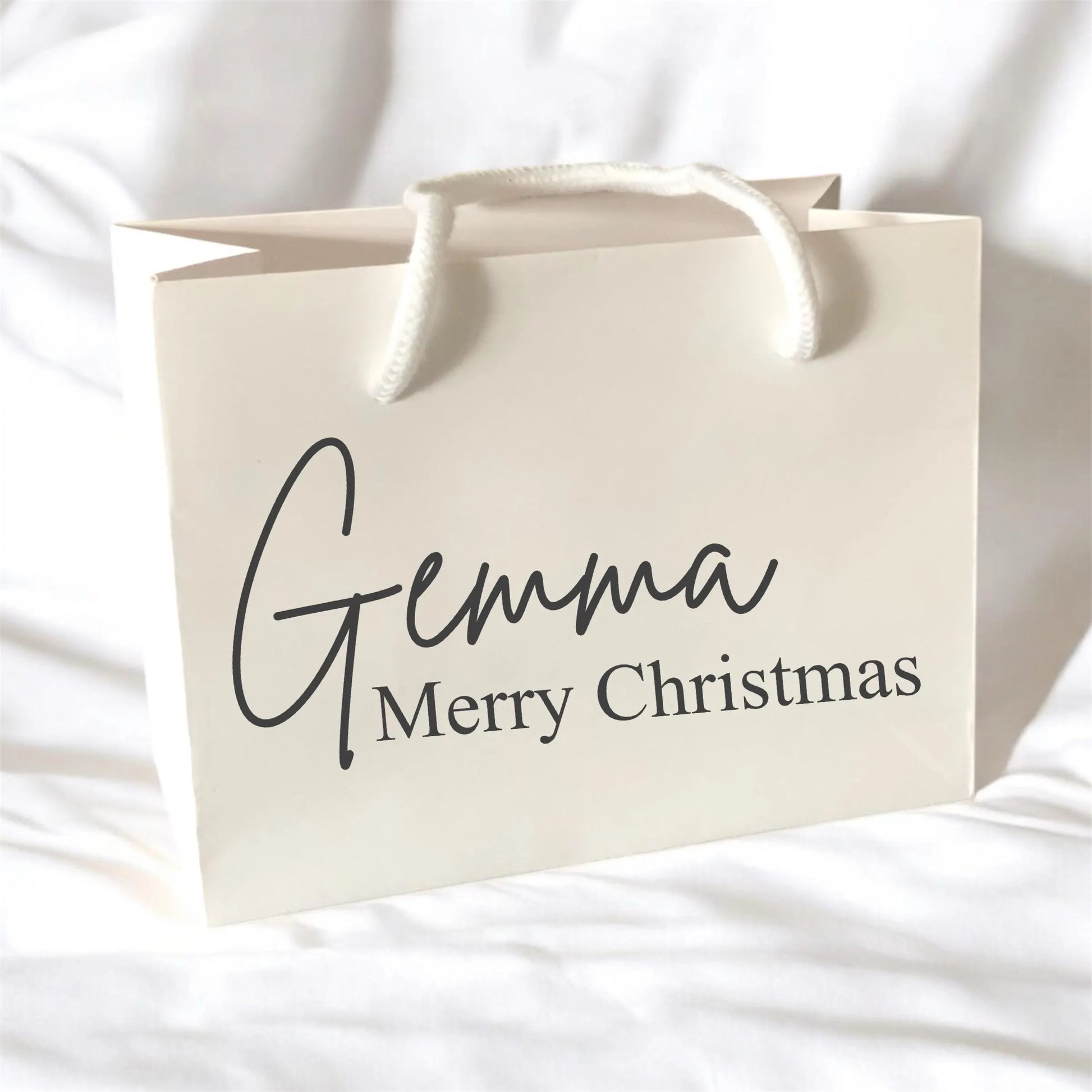 White Merry Christmas Gift Bag With Rope Handle Personalised With Name Small Medium Large Bags Gifts Present Table Gift Surprise